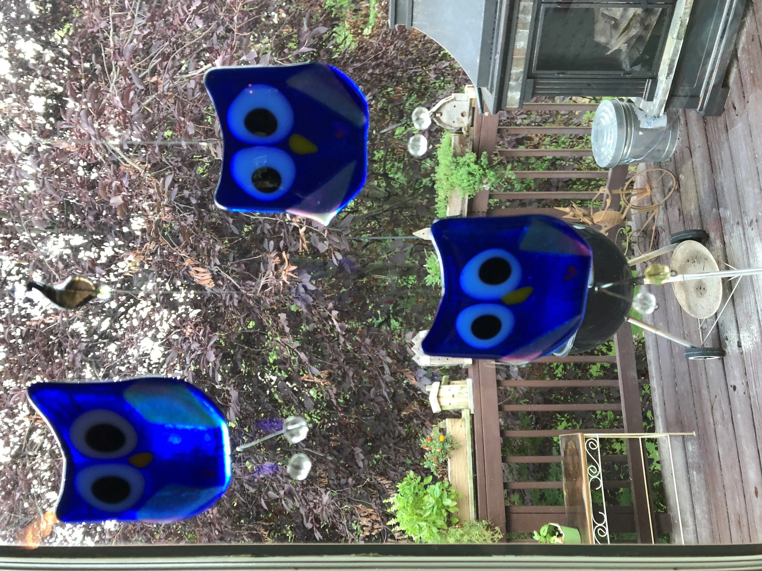 Image 1 of 1 Arleen's special order. Translucent cobalt blue fused glass owls dangling from drift wood $58.00 sold out Owls - special order for Arleen. Sold Out Added! Owls - special order for Arleen.